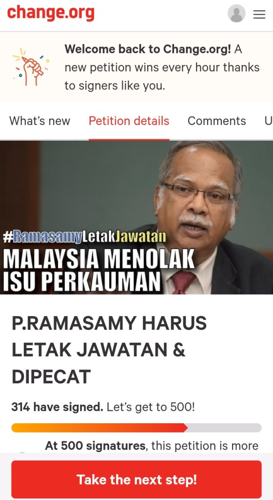 Petition · P.RAMASAMY HARUS LETAK JAWATAN & DIPECAT · Change.org